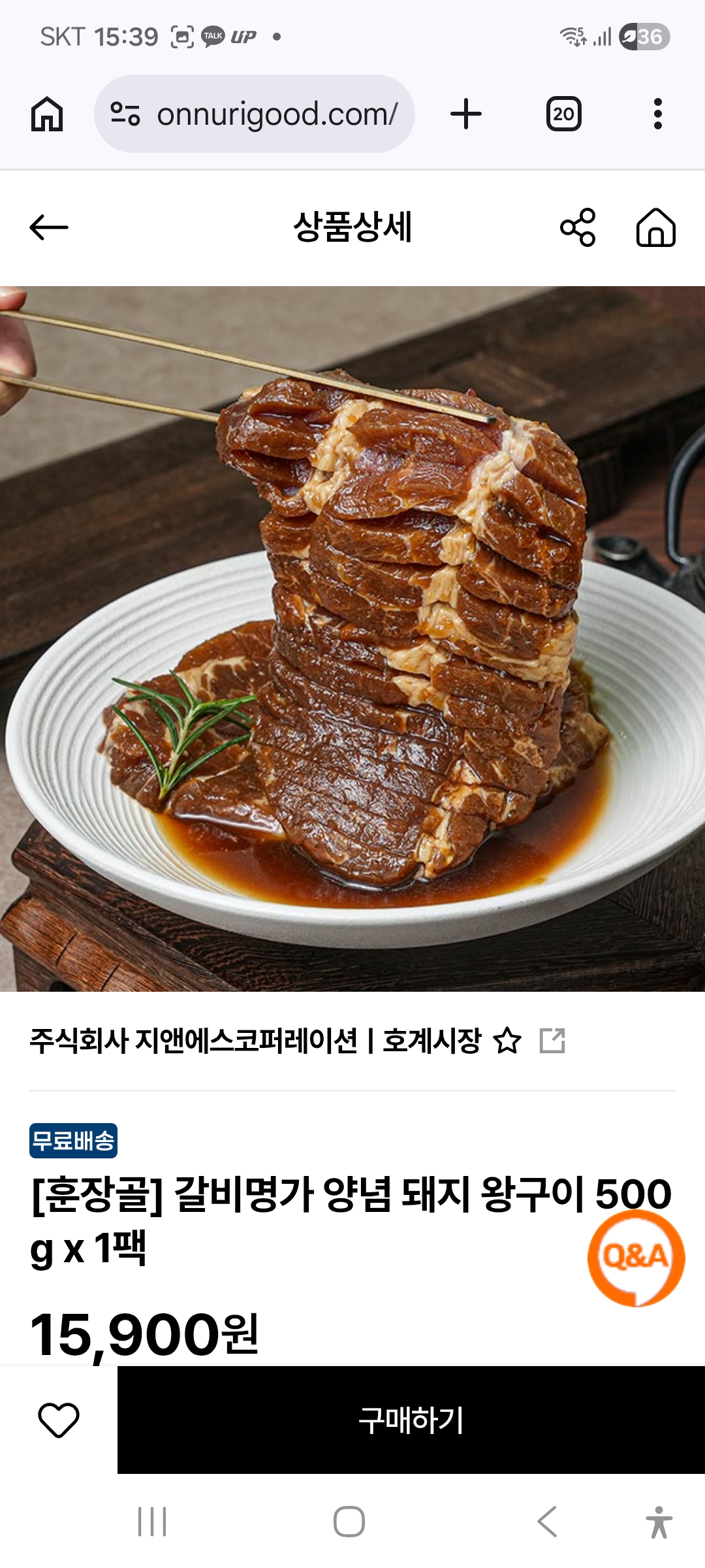 [훈장골] 갈비명가 양념 돼지 왕구이 500g x 1팩